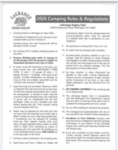 - 17 Unruliness or Poor Attitude: Campers who become unruly or belligerent with the Camping Committee, or any Director of the LaGrange Engine Club, will be permanently evicted from the fairgrounds.